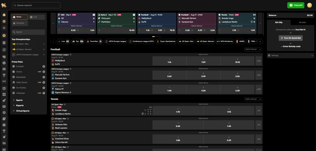 - Sázení: Vyberte si z naší široké nabídky a sázejte s jistotou.
